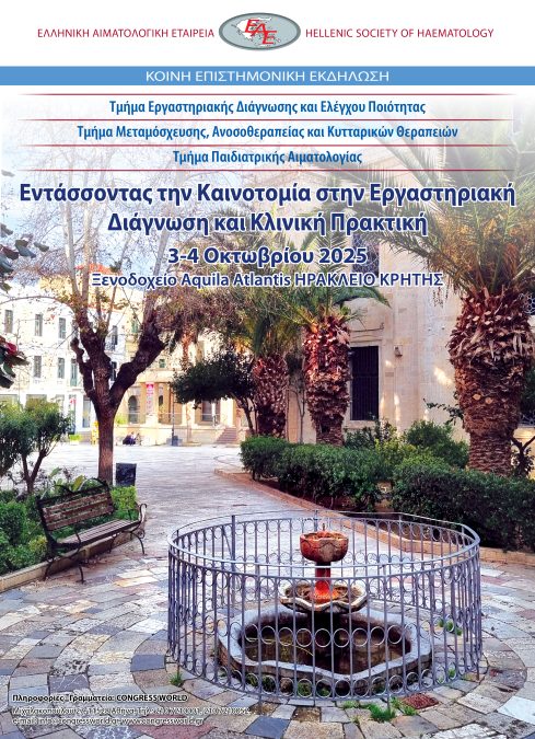Ιουλίου 16, 2025Κοινή Επιστημονική Εκδήλωση των Τμημάτων «Εργαστηριακής Διάγνωσης και Ελέγχου Ποιότητας», «Μεταμόσχευσης, Ανοσοθεραπείας και Κυτταρικών Θεραπειών», «Παιδιατρικής Αιματολογίας»